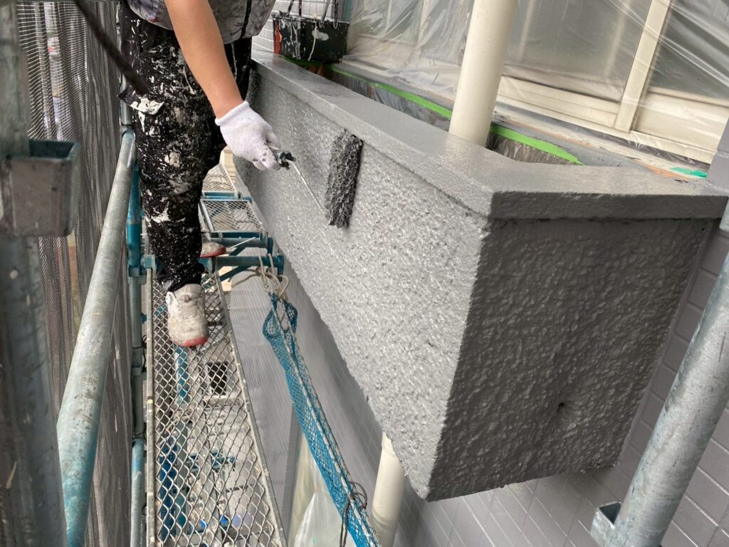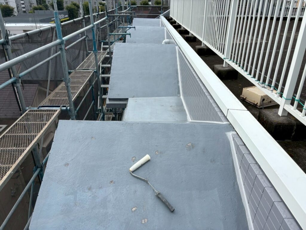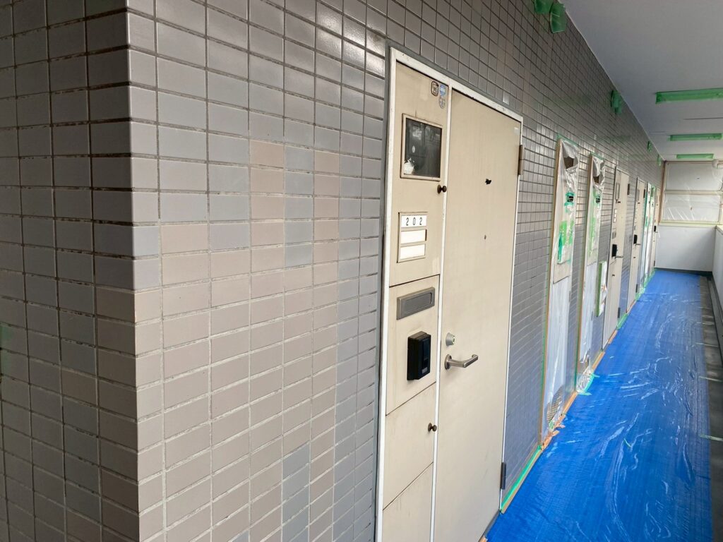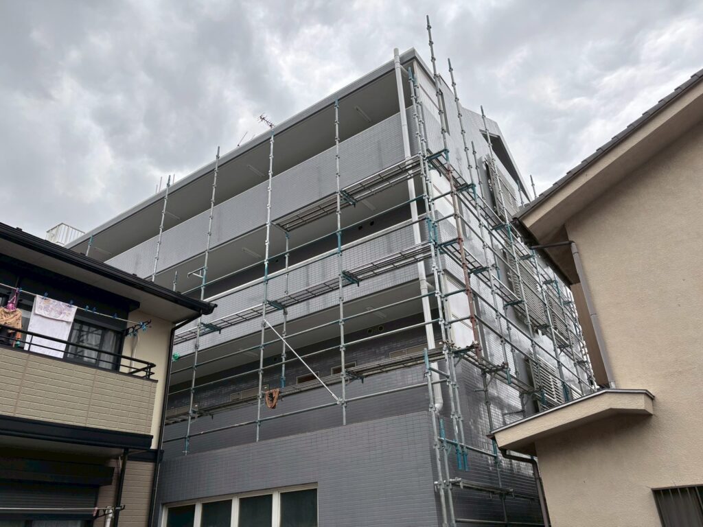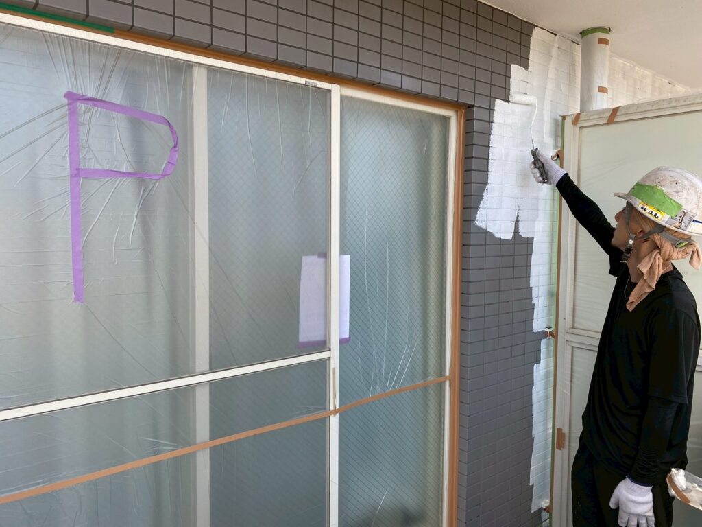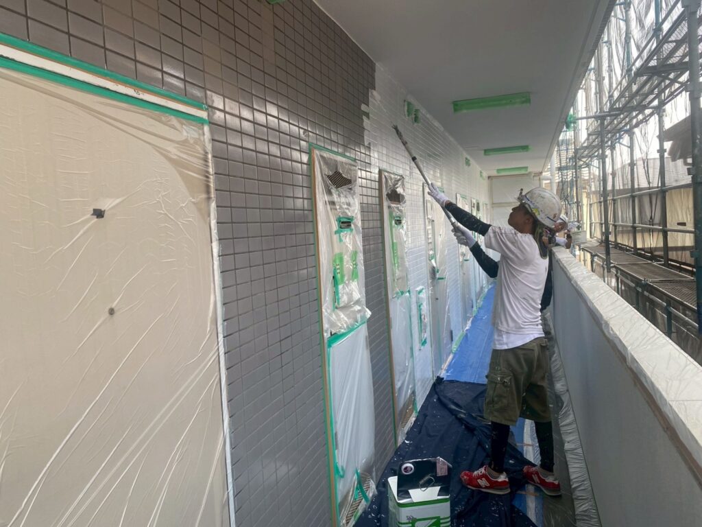 2026.04.13 【東京都立川市】RC造 地上4階15戸+1店舗 マンション外壁改修 施工事例 1足場工事 2タイル・下地補修工事 2.1タイル調査 2.2タイル張替 2.3.1脆弱塗膜補修 2.3.2クラック補修 2.3.3欠損・爆裂補修 3洗浄工事 4塗装工事 4.1タイル面”リリカタイトエナメル”使用 4.2共用廊下・バルコニー面 4.3鉄部塗装 5防水工事 5.1外部階段 5.2共用廊下 5.3屋根部分 6長尺シート工事 7足場解体・全景 こんにちは、エムズクラフトです〇 ご紹介するのは東京都立川市にあるマンション外壁改修工事です! 足場工事から下地補修工事・防水工事・塗装工事・洗浄工事・長尺シート工事まで行いました! 今回、弊社ではタイル面への塗装施工に初めて取り組みました💪🏽 使用材料はエスケー化研のリリカタイトエナメルを使用しています。 下地処理から上塗りまで丁寧に施工を行い、タイル特有の下地にも優れた密着性と美しい仕上がりを実現しました🌟 細かく載せていきますのでどんな事しているんだろう?とご興味頂けたら嬉しいです✨ 1.足場工事 足場設置 足場設置 足場設置 2.タイル・下地補修工事 タイル調査 タイル調査 タイル調査 タイル調査 タイル張替 タイル斫り タイル張り 目地詰め 拭き上げ 完了 脆弱塗膜補修 施工前 セメント補修・コテ押さえ ハケ引き 施工後 クラック補修 施工前 フィラー擦り込み 施工後 欠損・爆裂補修 施工前 モルタル充填・コテ押え ハケ引き 施工後 施工前 斫り状況 モルタル充填・コテ押え ハケ引き 施工後 3.洗浄工事 施工前 洗浄中 施工後 施工前 洗浄中 施工後 4.塗装工事 タイル面”リリカタイトエナメル”使用 施工前 下塗り 中塗り 上塗り 施工後 施工前 下塗り 中塗り 上塗り 施工後 共用廊下・バルコニー面 施工前 下塗り 中塗り 上塗り 施工後 施工前 プライマー塗布 下塗り 上塗り 施工後 鉄部塗装 施工前 ケレン状況 下塗り 上塗り 施工後 5.防水工事 外部階段 施工前 清掃状況 プライマー塗布 ウレタン防水1層目 ウレタン防水2層目 トップコート塗布 施工後 共用廊下 施工前 ケレン・清掃状況 プライマー塗布 入隅シール状況 ウレタン防水1層目 ウレタン防水2層目 トップコート塗布 施工後 屋根部分 施工前 清掃状況 プライマー塗布 ウレタン防水1層目 ウレタン防水2層目 トップコート塗布 施工後 5.長尺シート工事 施工前 ケレン・清掃状況 ボンド塗布 シート貼り・転圧 ジョイント溶接 入隅シール充填 ヘラ押さえ 施工後 6.足場解体・全景 足場解体 足場解体 全景