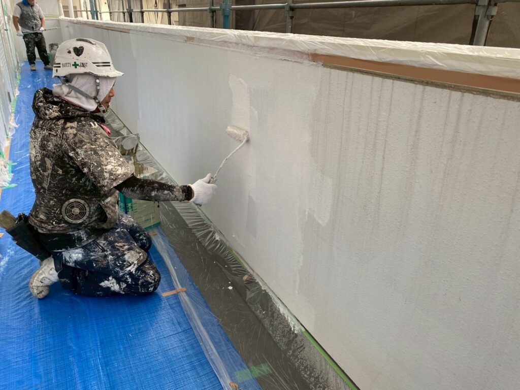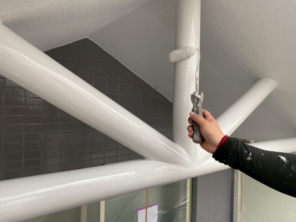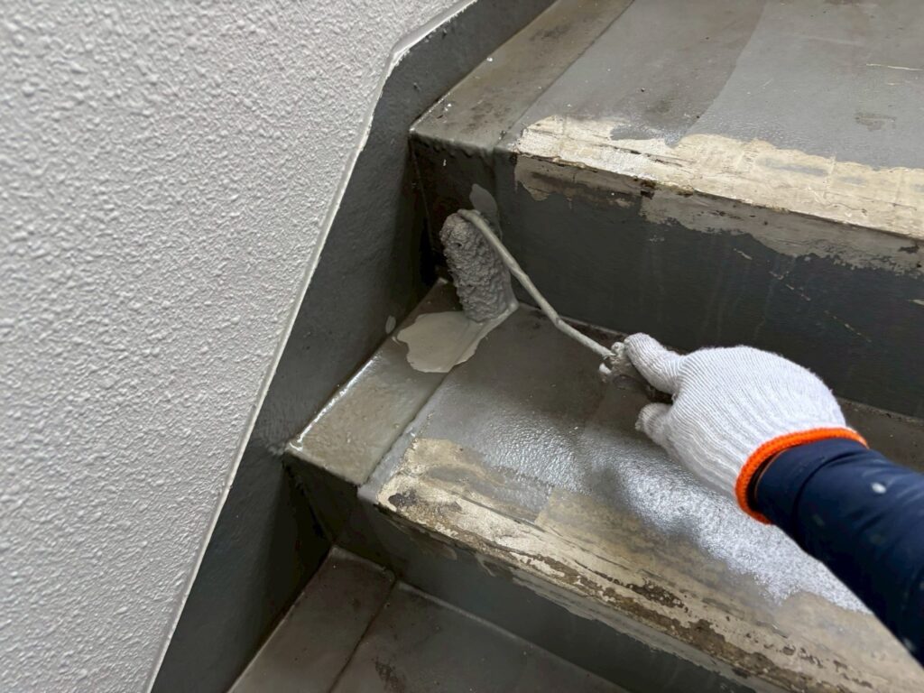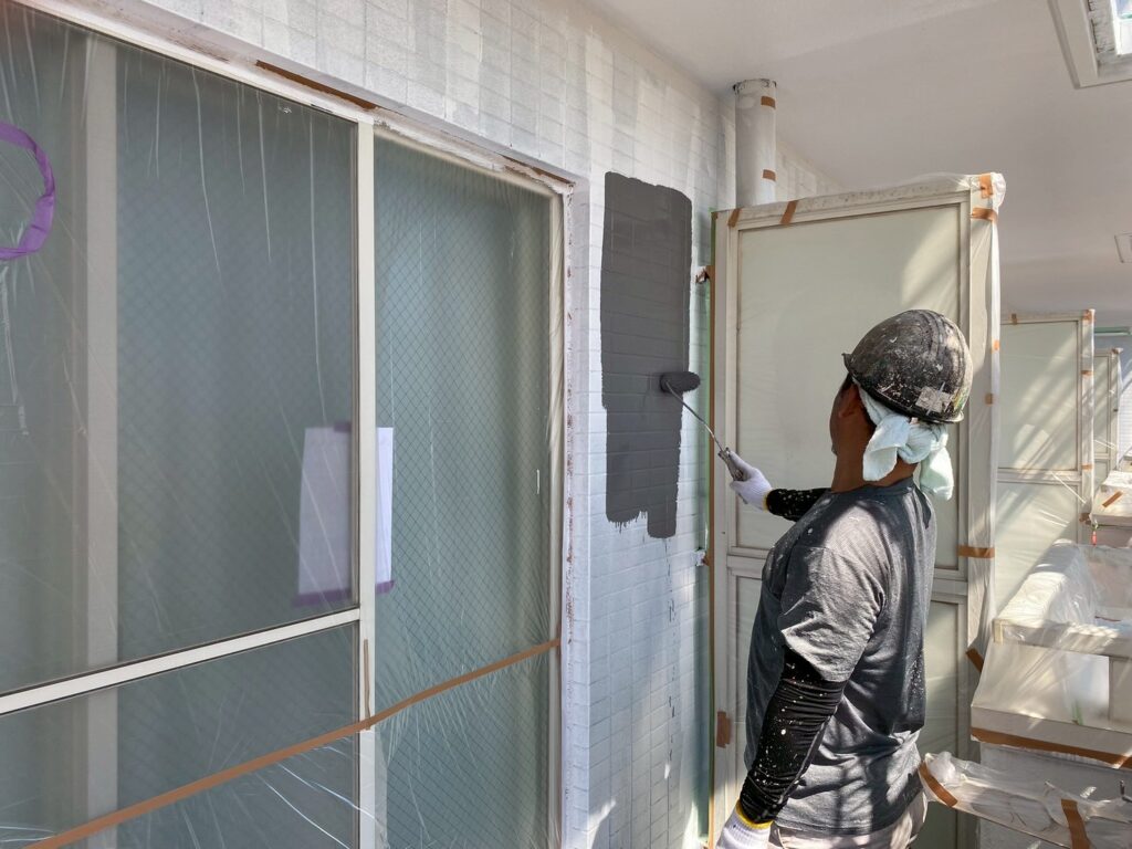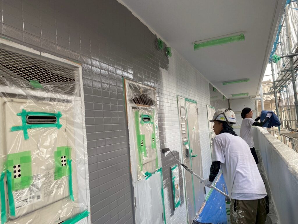 2026.04.13 【東京都立川市】RC造 地上4階15戸+1店舗 マンション外壁改修 施工事例 1足場工事 2タイル・下地補修工事 2.1タイル調査 2.2タイル張替 2.3.1脆弱塗膜補修 2.3.2クラック補修 2.3.3欠損・爆裂補修 3洗浄工事 4塗装工事 4.1タイル面”リリカタイトエナメル”使用 4.2共用廊下・バルコニー面 4.3鉄部塗装 5防水工事 5.1外部階段 5.2共用廊下 5.3屋根部分 6長尺シート工事 7足場解体・全景 こんにちは、エムズクラフトです〇 ご紹介するのは東京都立川市にあるマンション外壁改修工事です! 足場工事から下地補修工事・防水工事・塗装工事・洗浄工事・長尺シート工事まで行いました! 今回、弊社ではタイル面への塗装施工に初めて取り組みました💪🏽 使用材料はエスケー化研のリリカタイトエナメルを使用しています。 下地処理から上塗りまで丁寧に施工を行い、タイル特有の下地にも優れた密着性と美しい仕上がりを実現しました🌟 細かく載せていきますのでどんな事しているんだろう?とご興味頂けたら嬉しいです✨ 1.足場工事 足場設置 足場設置 足場設置 2.タイル・下地補修工事 タイル調査 タイル調査 タイル調査 タイル調査 タイル張替 タイル斫り タイル張り 目地詰め 拭き上げ 完了 脆弱塗膜補修 施工前 セメント補修・コテ押さえ ハケ引き 施工後 クラック補修 施工前 フィラー擦り込み 施工後 欠損・爆裂補修 施工前 モルタル充填・コテ押え ハケ引き 施工後 施工前 斫り状況 モルタル充填・コテ押え ハケ引き 施工後 3.洗浄工事 施工前 洗浄中 施工後 施工前 洗浄中 施工後 4.塗装工事 タイル面”リリカタイトエナメル”使用 施工前 下塗り 中塗り 上塗り 施工後 施工前 下塗り 中塗り 上塗り 施工後 共用廊下・バルコニー面 施工前 下塗り 中塗り 上塗り 施工後 施工前 プライマー塗布 下塗り 上塗り 施工後 鉄部塗装 施工前 ケレン状況 下塗り 上塗り 施工後 5.防水工事 外部階段 施工前 清掃状況 プライマー塗布 ウレタン防水1層目 ウレタン防水2層目 トップコート塗布 施工後 共用廊下 施工前 ケレン・清掃状況 プライマー塗布 入隅シール状況 ウレタン防水1層目 ウレタン防水2層目 トップコート塗布 施工後 屋根部分 施工前 清掃状況 プライマー塗布 ウレタン防水1層目 ウレタン防水2層目 トップコート塗布 施工後 5.長尺シート工事 施工前 ケレン・清掃状況 ボンド塗布 シート貼り・転圧 ジョイント溶接 入隅シール充填 ヘラ押さえ 施工後 6.足場解体・全景 足場解体 足場解体 全景