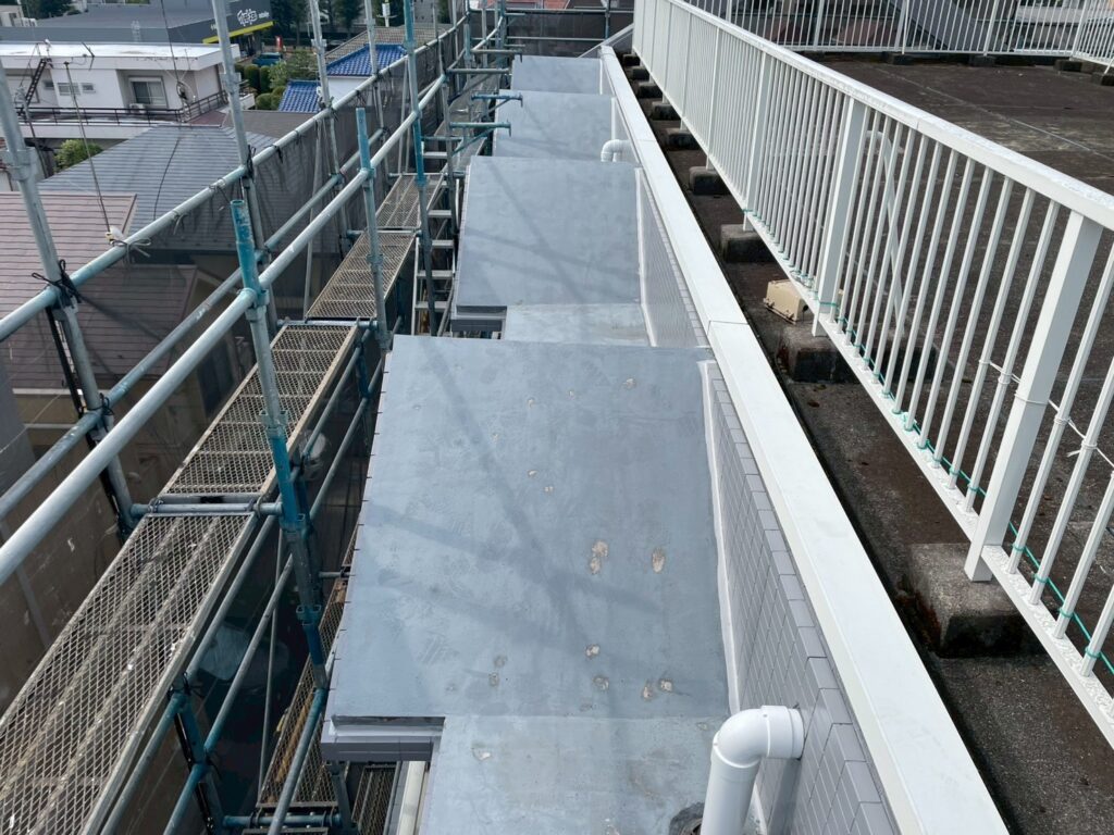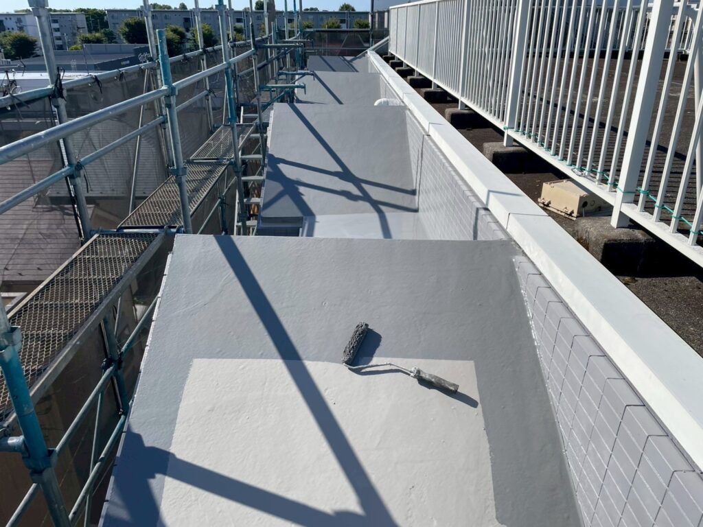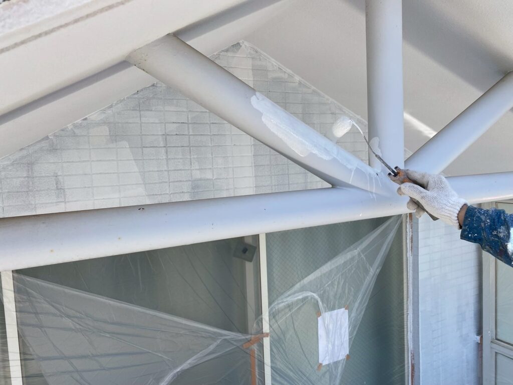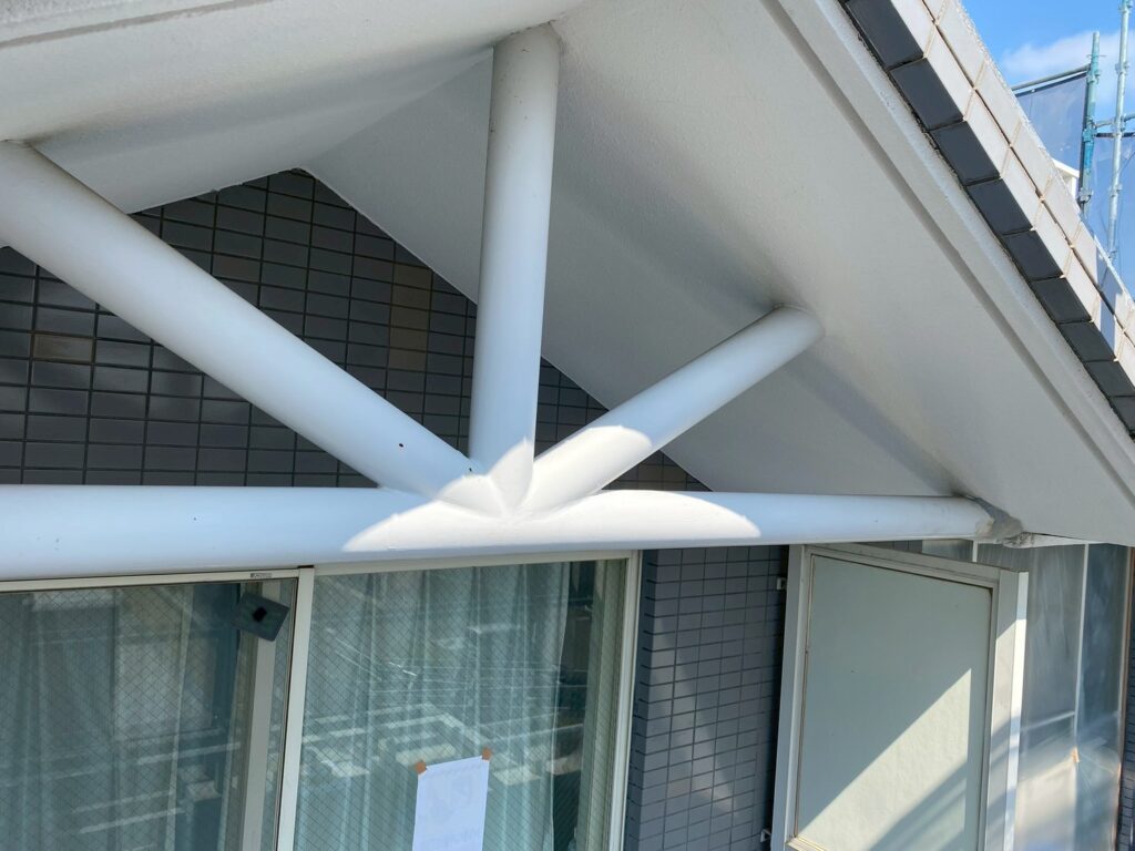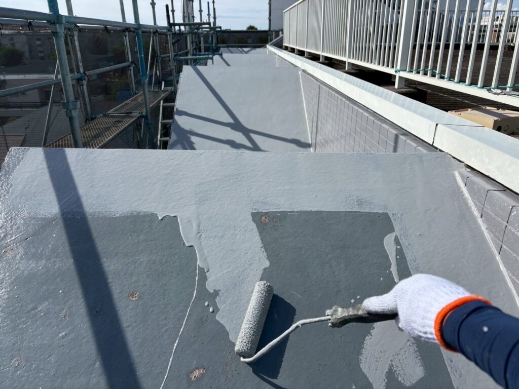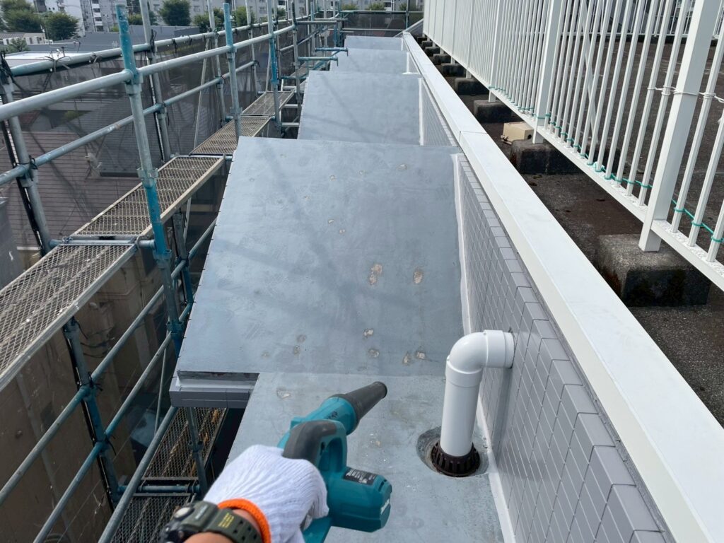 2026.04.13 【東京都立川市】RC造 地上4階15戸+1店舗 マンション外壁改修 施工事例 1足場工事 2タイル・下地補修工事 2.1タイル調査 2.2タイル張替 2.3.1脆弱塗膜補修 2.3.2クラック補修 2.3.3欠損・爆裂補修 3洗浄工事 4塗装工事 4.1タイル面”リリカタイトエナメル”使用 4.2共用廊下・バルコニー面 4.3鉄部塗装 5防水工事 5.1外部階段 5.2共用廊下 5.3屋根部分 6長尺シート工事 7足場解体・全景 こんにちは、エムズクラフトです〇 ご紹介するのは東京都立川市にあるマンション外壁改修工事です! 足場工事から下地補修工事・防水工事・塗装工事・洗浄工事・長尺シート工事まで行いました! 今回、弊社ではタイル面への塗装施工に初めて取り組みました💪🏽 使用材料はエスケー化研のリリカタイトエナメルを使用しています。 下地処理から上塗りまで丁寧に施工を行い、タイル特有の下地にも優れた密着性と美しい仕上がりを実現しました🌟 細かく載せていきますのでどんな事しているんだろう?とご興味頂けたら嬉しいです✨ 1.足場工事 足場設置 足場設置 足場設置 2.タイル・下地補修工事 タイル調査 タイル調査 タイル調査 タイル調査 タイル張替 タイル斫り タイル張り 目地詰め 拭き上げ 完了 脆弱塗膜補修 施工前 セメント補修・コテ押さえ ハケ引き 施工後 クラック補修 施工前 フィラー擦り込み 施工後 欠損・爆裂補修 施工前 モルタル充填・コテ押え ハケ引き 施工後 施工前 斫り状況 モルタル充填・コテ押え ハケ引き 施工後 3.洗浄工事 施工前 洗浄中 施工後 施工前 洗浄中 施工後 4.塗装工事 タイル面”リリカタイトエナメル”使用 施工前 下塗り 中塗り 上塗り 施工後 施工前 下塗り 中塗り 上塗り 施工後 共用廊下・バルコニー面 施工前 下塗り 中塗り 上塗り 施工後 施工前 プライマー塗布 下塗り 上塗り 施工後 鉄部塗装 施工前 ケレン状況 下塗り 上塗り 施工後 5.防水工事 外部階段 施工前 清掃状況 プライマー塗布 ウレタン防水1層目 ウレタン防水2層目 トップコート塗布 施工後 共用廊下 施工前 ケレン・清掃状況 プライマー塗布 入隅シール状況 ウレタン防水1層目 ウレタン防水2層目 トップコート塗布 施工後 屋根部分 施工前 清掃状況 プライマー塗布 ウレタン防水1層目 ウレタン防水2層目 トップコート塗布 施工後 5.長尺シート工事 施工前 ケレン・清掃状況 ボンド塗布 シート貼り・転圧 ジョイント溶接 入隅シール充填 ヘラ押さえ 施工後 6.足場解体・全景 足場解体 足場解体 全景